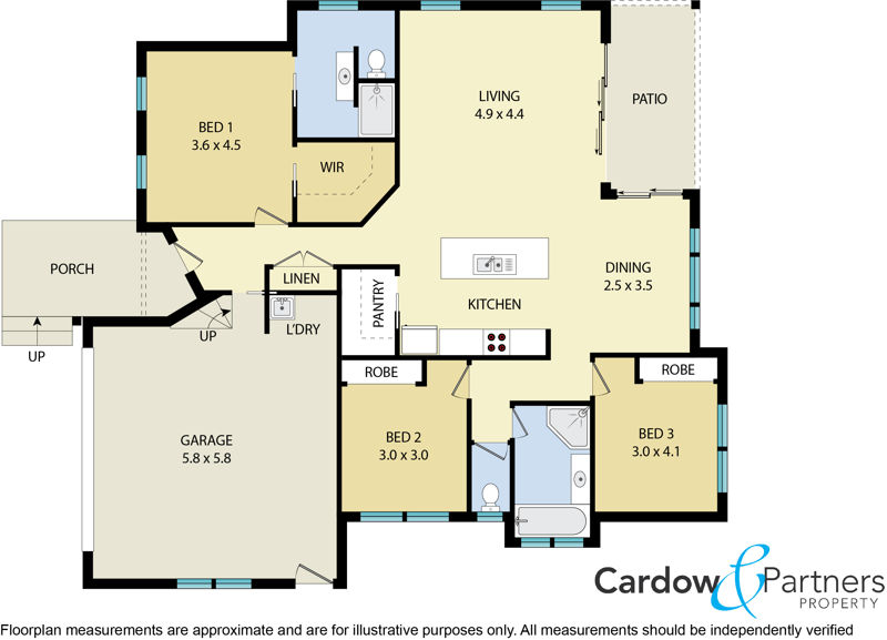 Bedrooms 2 and 3 are (3m x 3m) both offering robes and ceiling fans.