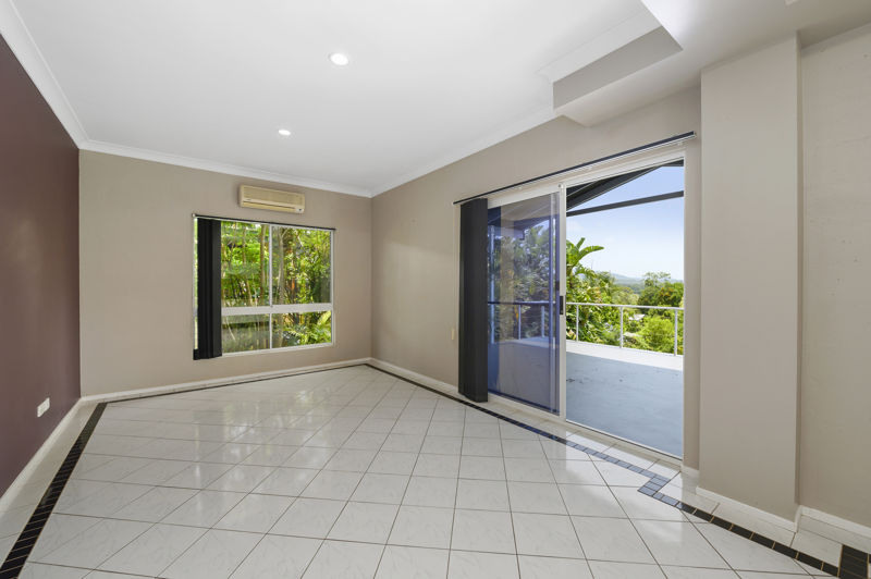 Bedroom 1 (4.6m x 3.5m) is carpeted with mirror door built-in robes, a window looking out onto the rear yard and mountain views, air conditioning, ensuite and sitting room or office. Bedroom 2 (4.6m x 2.7m) and bedroom 3 (2.9m x 3.3m) are also carpeted with mirror door built-in robes and ceiling fans.